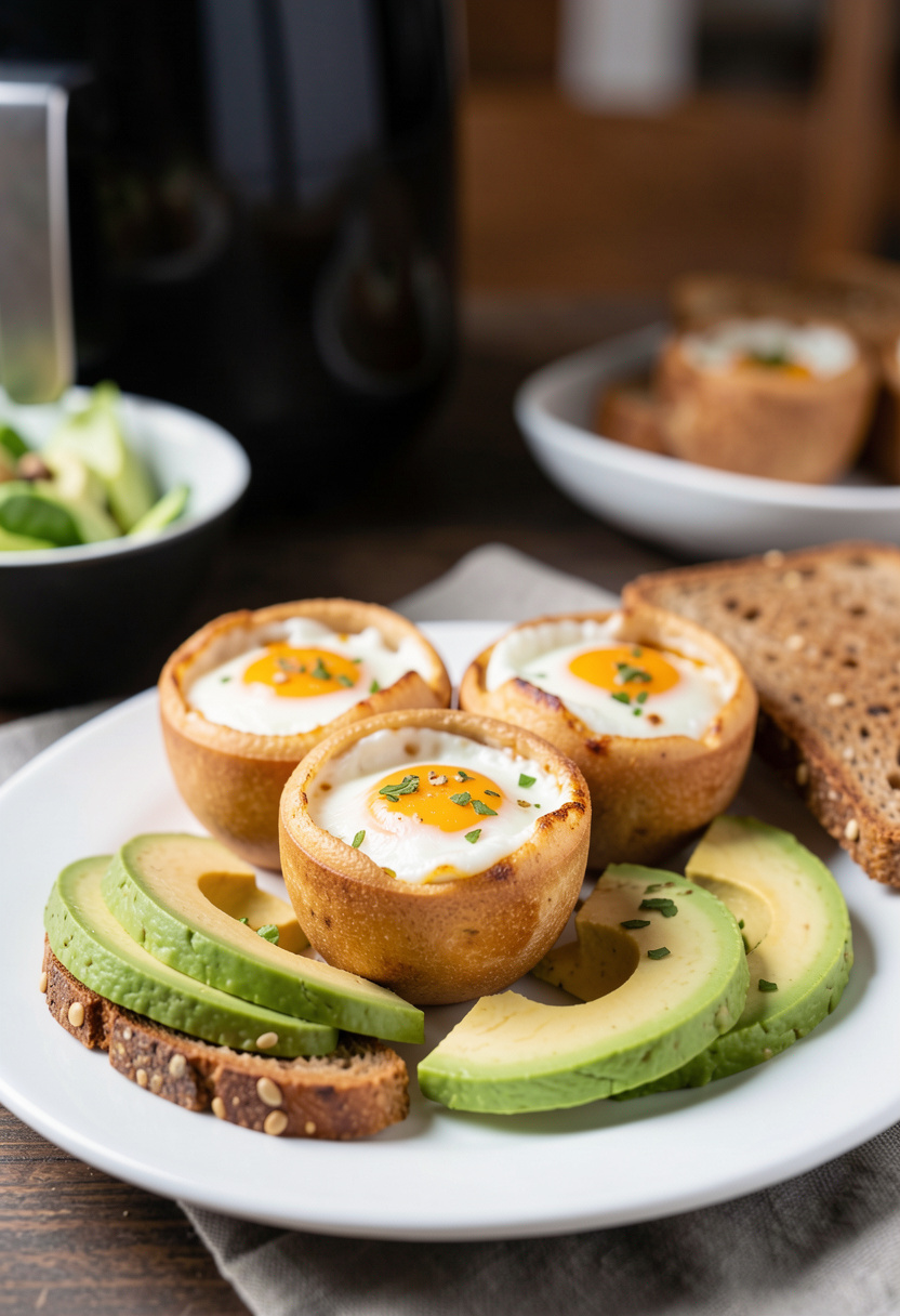 Cook the egg cups in the air fryer at 350°F (175°C) for 10–12 minutes.