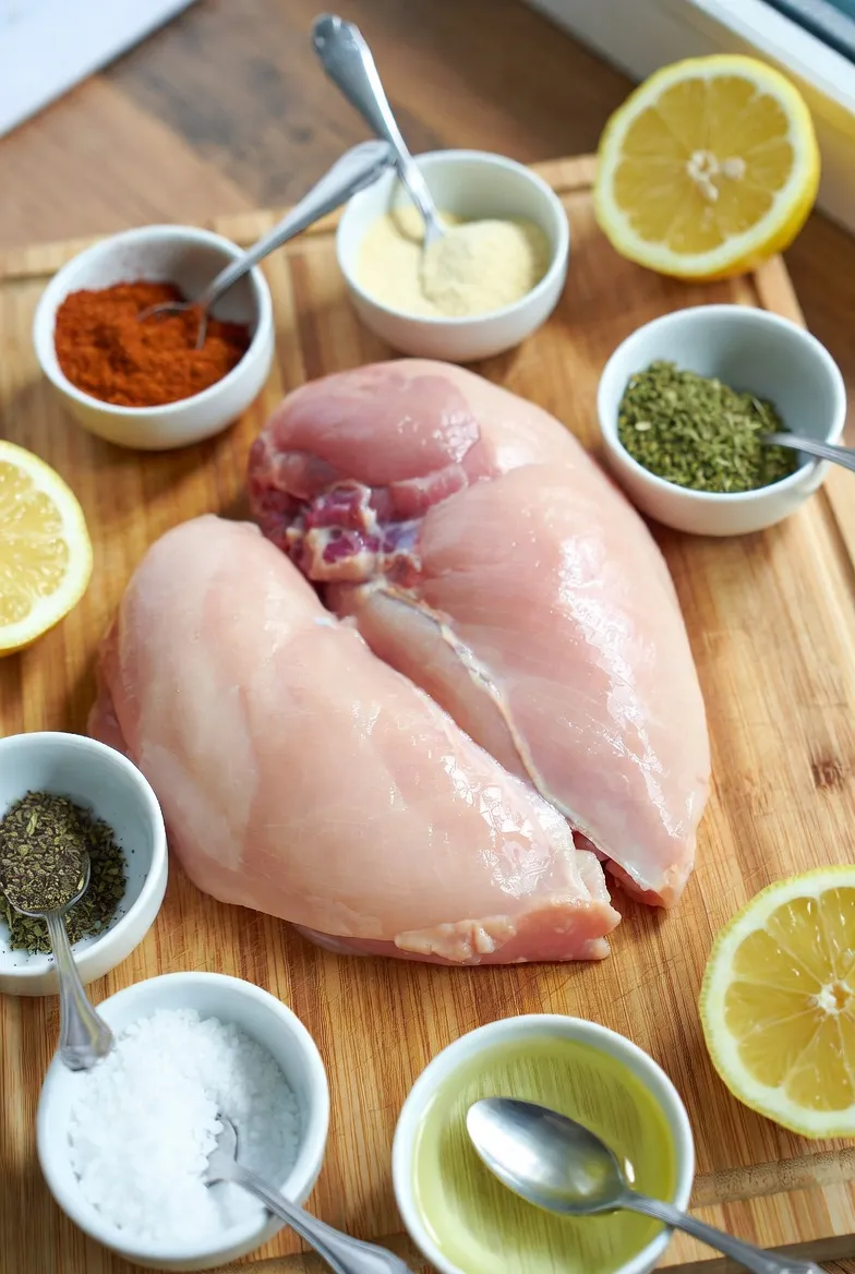 Pat the chicken breasts dry with paper towels. If the breasts are thick, gently pound them to an even thickness to ensure even cooking.