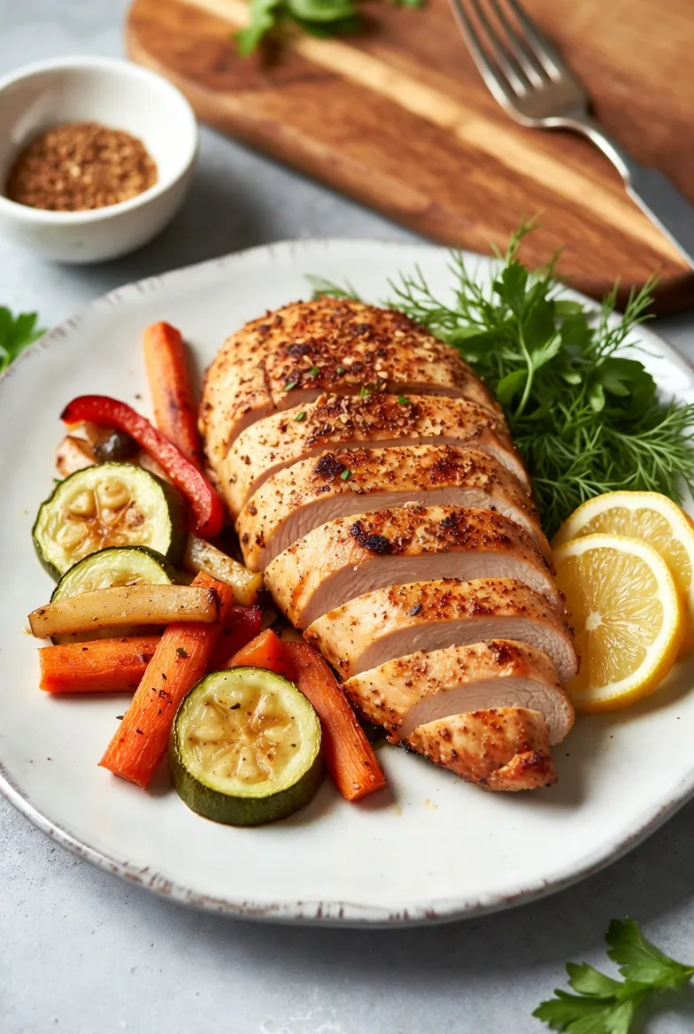 Remove the chicken from the air fryer and let it rest for 3–5 minutes before slicing. Serve with lemon wedges, roasted vegetables, or a fresh salad.