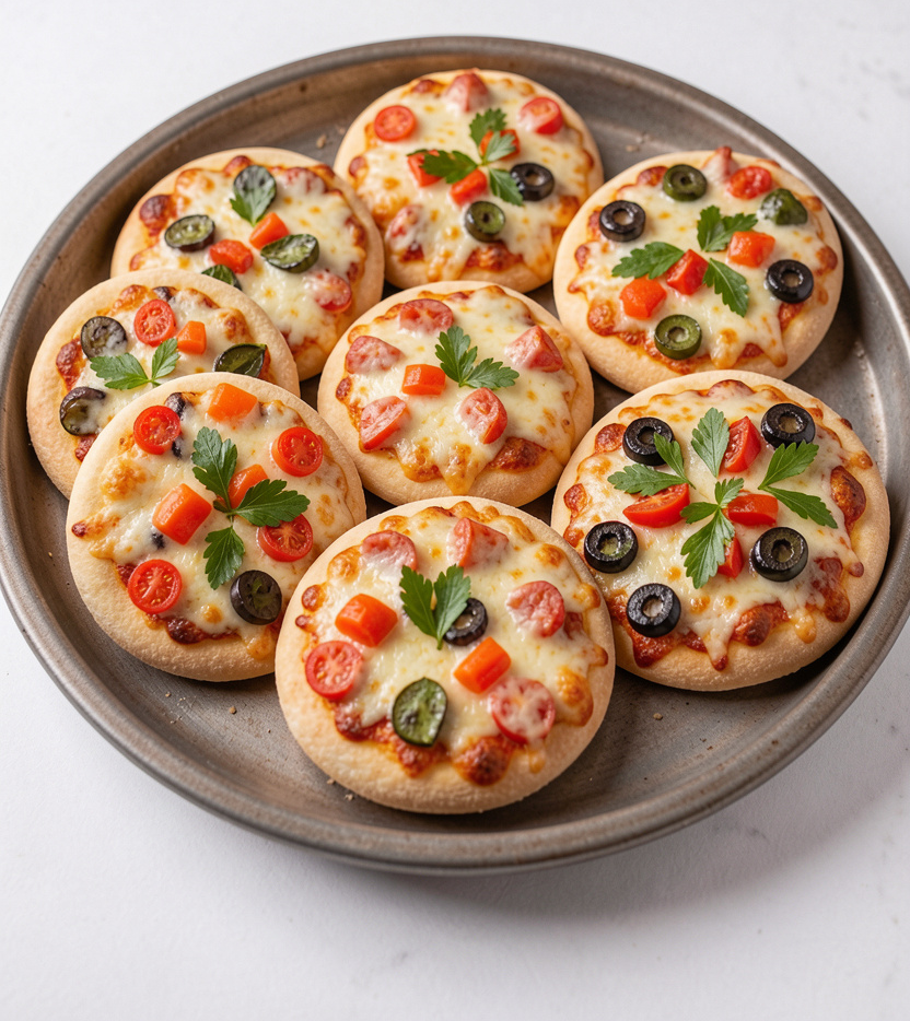 Remove from the oven, let cool slightly, and serve warm. These mini pizzas are best enjoyed fresh and cheesy.